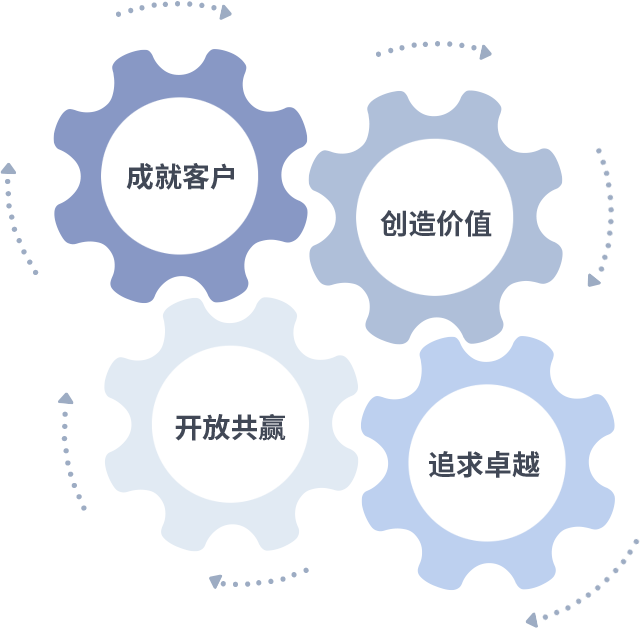 成就客户是一切决策的出发点,创造价值是衡量所有工作的标准,追求卓越是伟德国际做事做人的态度,开放共赢是伟德国际的格局也是最终的结果。价值观的齿轮环环相扣,推动着组织里的每个人不断向前。